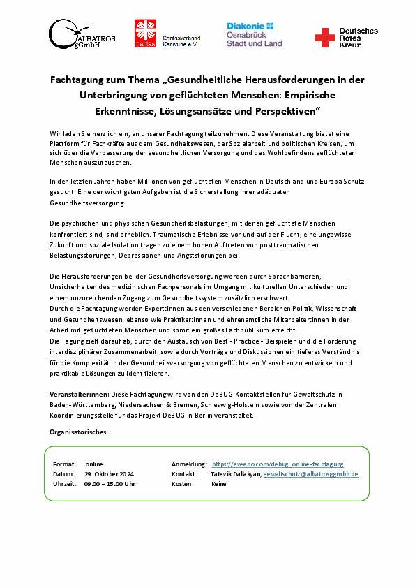 29.10.2024: Online-Fachtagung „Gesundheitliche Herausforderungen in der Unterbringung von geflüchteten Menschen"