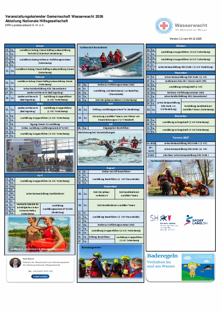 Veranstaltungsübersicht für Aus-, Fort- und Weiterbildungen in der DRK-Wasserwacht 2026