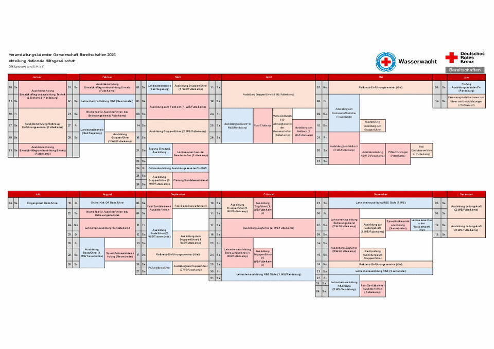 Veranstaltungsübersicht für Aus- und Fortbildungen in den DRK-Bereitschaften 2026