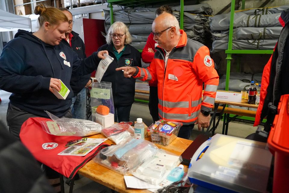 Zum Projektstart am vergangenen Wochenende wurden bereits 45 Multiplikator*innen – überwiegend Ehrenamtliche aus den DRK-Kreisverbänden – im DRK-Einsatz- und Logistikzentrum (ELZ) in Schwentinental geschult. Im Anschluss fand eine offizielle Übergabe der Kisten-Sets an die DRK-Kreisverbände statt – dazu waren u.a. Innenstaatssekretär Dr. Sönke Schulz, der CDU-Fraktionsvorsitzende Tobias Koch und DRK-SH-Vorstand Nadine Lenschau ins ELZ gekommen.