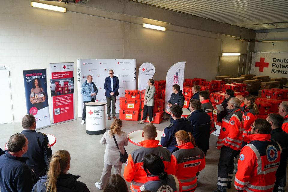 Sturmfluten, Starkregen oder großflächige Stromausfälle – in Schleswig-Holstein als Küstenland sind die Menschen in besonderer Weise von Naturereignissen und möglichen Krisenlagen betroffen. Umso wichtiger ist es, dass die Schleswig-Holsteiner*innen lernen, wie sie sich im Notfall selbst helfen können. Genau hier setzt das Projekt „Bevölkerungsschutz aus der Kiste“ des Deutschen Roten Kreuzes an: Ein Set besteht aus sechs Themen-Kisten – von „Alarm“ und „Krisenkommunikation“ über „Black Out“ und „Notfallküche“ bis hin zu „Notfallvorsorge“ und „Klimawandel“. Die Kisten stecken voller Ausrüstung, interaktiver Übungen und Spiele, die alle Altersgruppen zum Mitmachen einladen und so ihr Bewusstsein für verschiedene Notfallszenarien stärken.